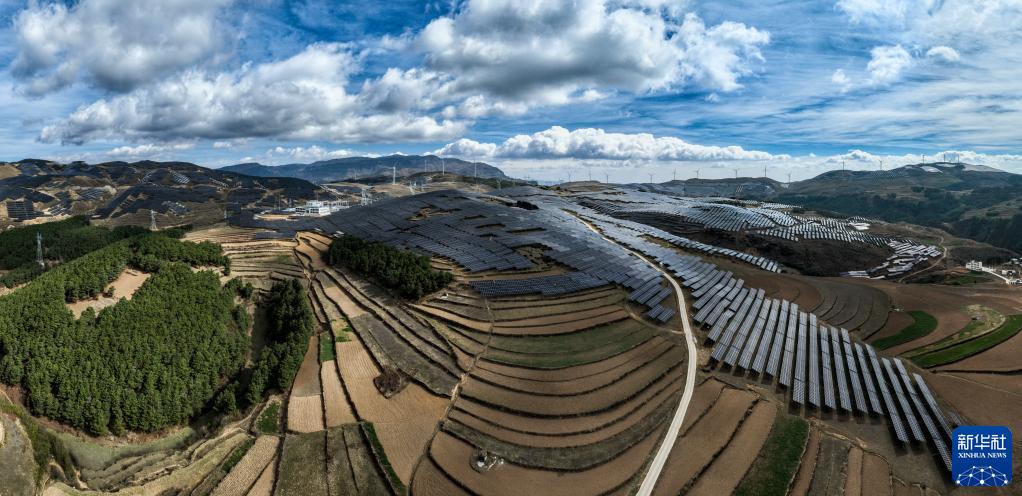 Das Drohnenfoto vom 20. März zeigt das Photovoltaik-Kraftwerk Haiba im Kreis Qiaojia in Yunnan. (Foto von Jiang Wenyao/Xinhua)
