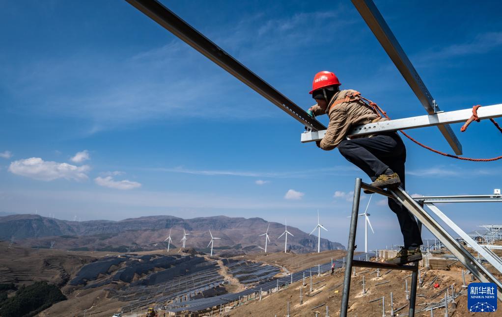 Ein Arbeiter installiert Einrichtungen für die Photovoltaik-Stromerzeugung. (Foto vom 19. März, Jiang Wenyao/Xinhua)