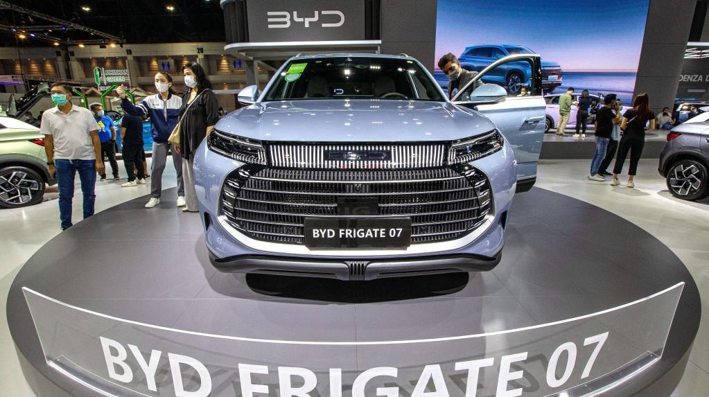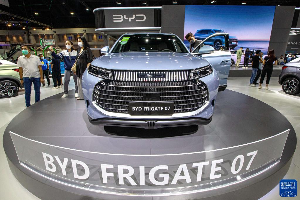Besucher schauen sich ein BYD Frigate 07-Modell auf der Bangkok-Automesse an. (Foto vom 22. März, Wang Teng/Xinhua)
