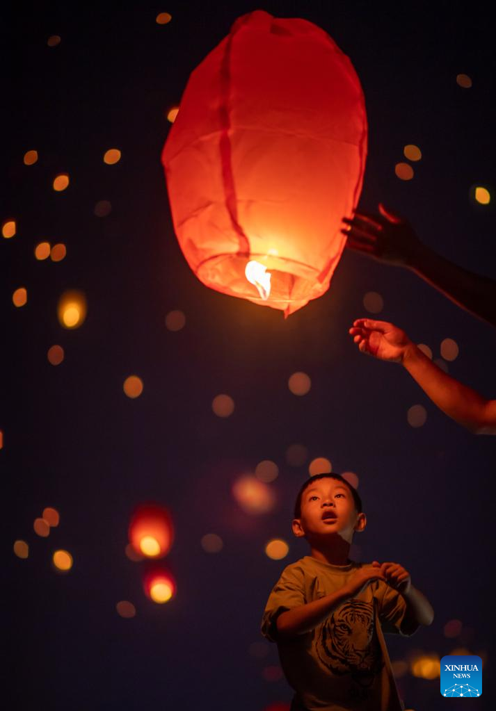 Himmelslaternen beim Wasserspritzfestival in Yunnan