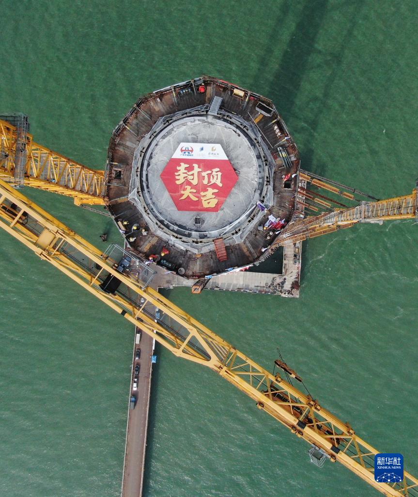 Das Dach des mittleren Turms der Huangmaohai-Brücke wird am 18. April erfolgreich fertiggestellt. (Foto von Deng Hua/Xinhua)