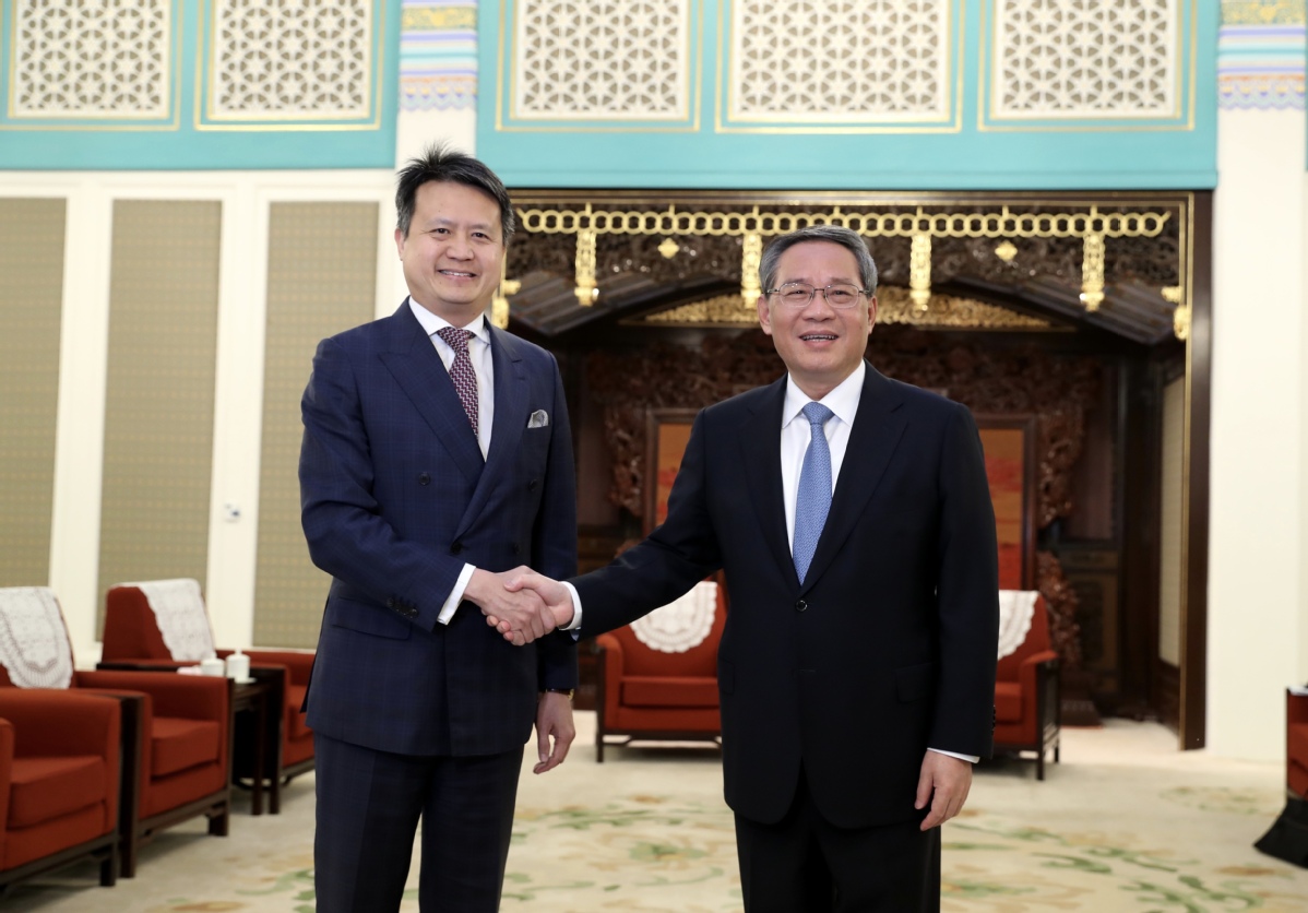 Der chinesische Premierminister Li Qiang trifft den Generaldirektor der Weltorganisation für geistiges Eigentum (WIPO), Daren Tang. (Foto vom 27. April 2023: Wang Zhuangfei/chinadaily.com.cn)