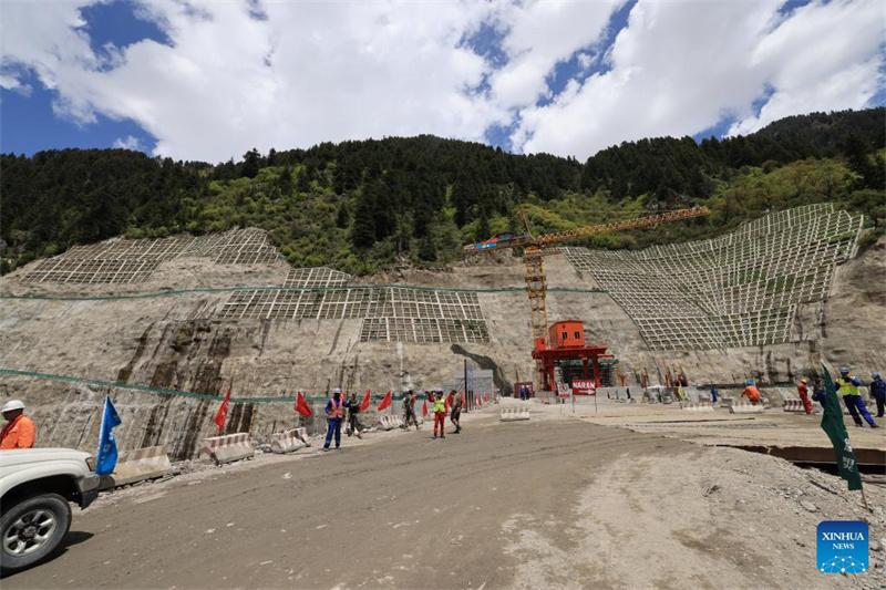 Fertigstellung der Dammkrone beim Staudamm-Bau für -Wasserkraftwerk in Pakistan ist ein wichtiger Meilenstein