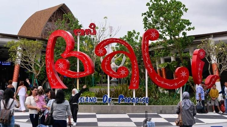 Reisende an einem Ausgang des internationalen Flughafens Bali Denpasar Ngurah Rai auf Bali, einem populären Touristenziel in Indonesien. (Foto vom 9. November 2022, Xinhua)