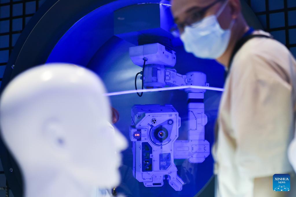 MOSS, ein intelligenter Computer aus dem Science-Fiction-Film „Die wandernde Erde 2", wird auf einer Ausstellung gezeigt. (Foto vom 30. Mai 2023, Xinhua)