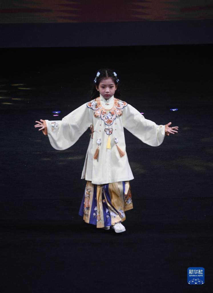 Ein Mädchen präsentiert traditionelle Kleidung. (Foto vom 1. Juni 2023, Xinhua)