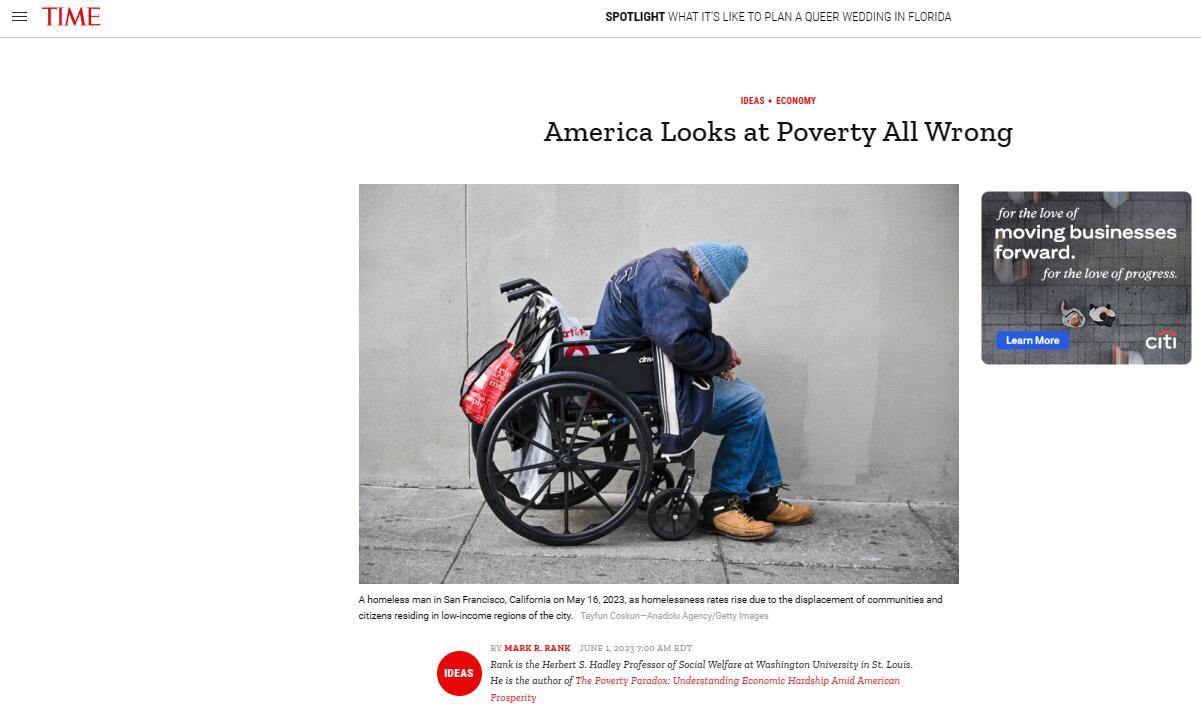 In Amerika werde Armut seit Jahrzehnten missverstanden, weil man davon ausgehe, dass die von Armut Betroffenen weit außerhalb der Mehrheit der Amerikaner lebten, berichtete die US-amerikanische Zeitschrift Time am 1. Juni.