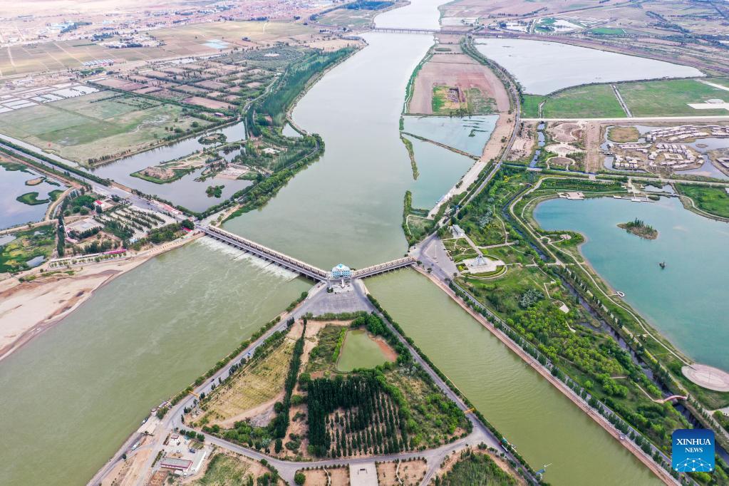 Diese Luftaufnahme vom 6. Juni 2023 zeigt das Sanshenggong-Wasserkontrollprojekt in der nordchinesischen Autonomen Region Innere Mongolei. (Xinhua/Lian Zhen)