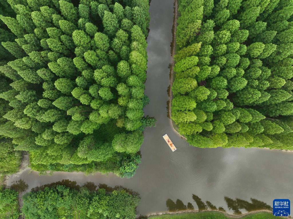 Luftaufnahme des Waldparks am Gelben Meer in Dongtai. (Foto: Ji Chunpeng/Xinhua)