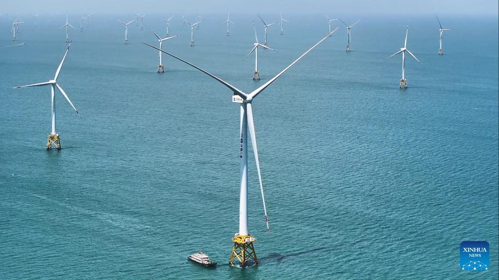 Die Luftaufnahme zeigt die 16-Megawatt-Windturbine. (Foto vom 19. Juli 2023, Xinhua)