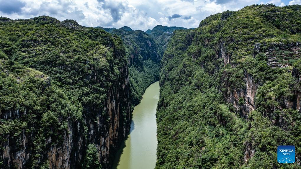 Die Luftaufnahme zeigt die malerische Schlucht des Huajiang-Flusses. (Foto vom 2. August 2023, Xinhua)