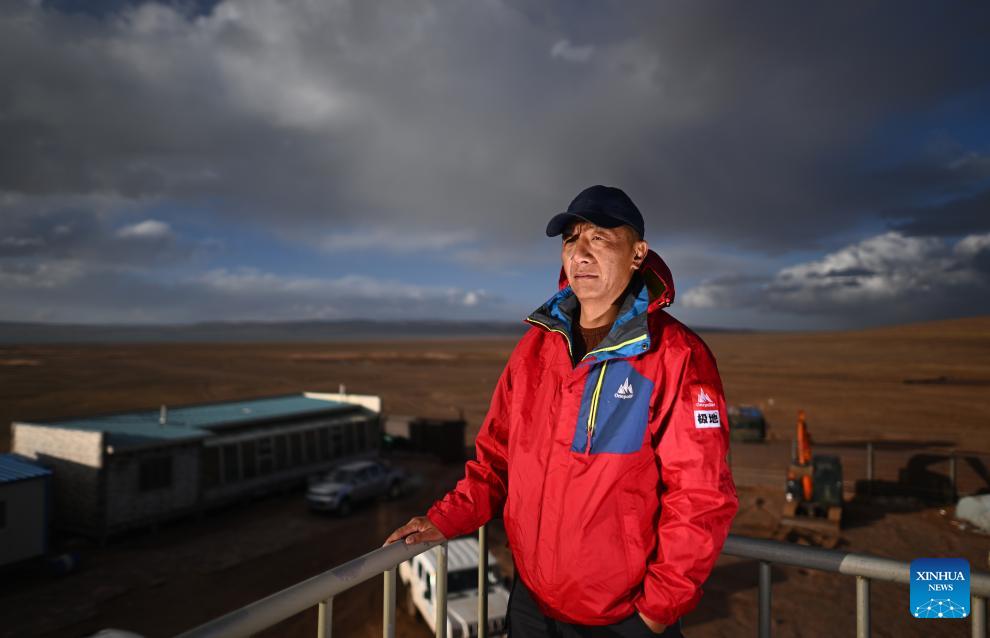 Guo Xuehu, stellvertretender Leiter der Schutzstation des Drolkar-Sees, posiert am 17. Juni 2023 für Fotos in der Schutzstation des Drolkar-Sees in Hoh Xil. (Xinhua/Zhang Hongxiang)