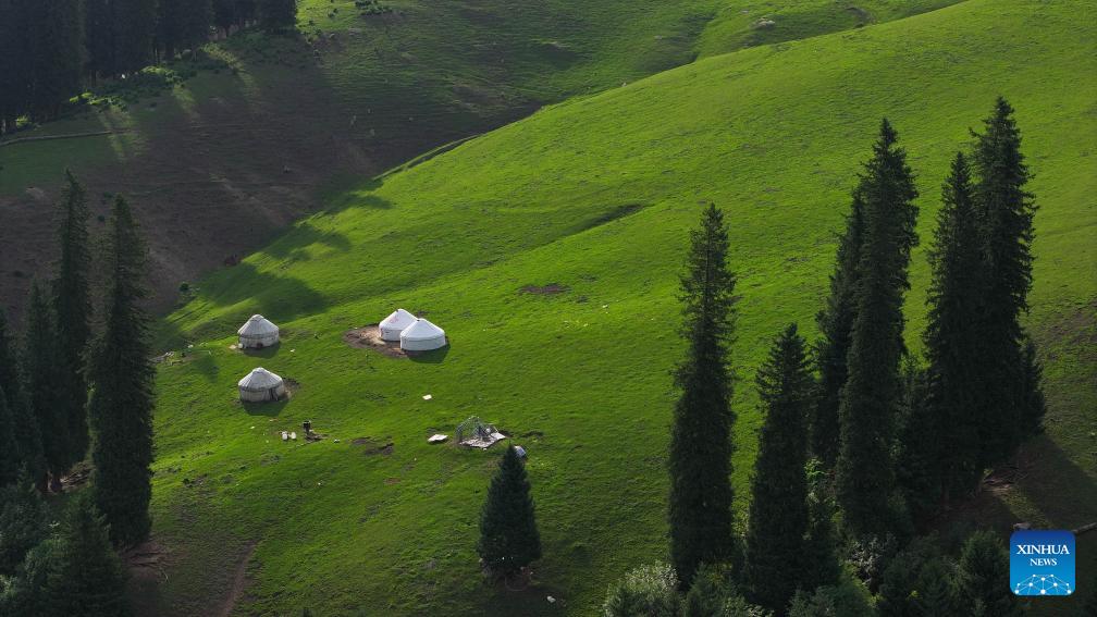 Diese Luftaufnahme vom 23. August 2023 zeigt einen Blick auf die Duku-Autobahn im Nordwesten Chinas in der Uigurischen Autonomen Region Xinjiang. (Xinhua/Wang Peng)