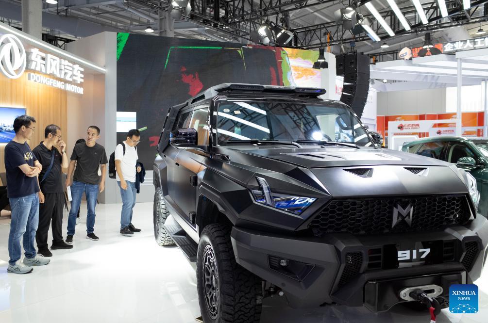 Besucher betrachten ein Elektrofahrzeug der Dongfeng Motor Corporation. (Foto vom 5. September 2023, Xinhua)