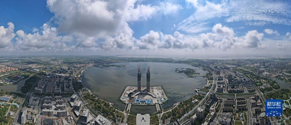 Shanghai: Kernzylinder von zwei Wolkenkratzern in Lingang feiern Richtfest
