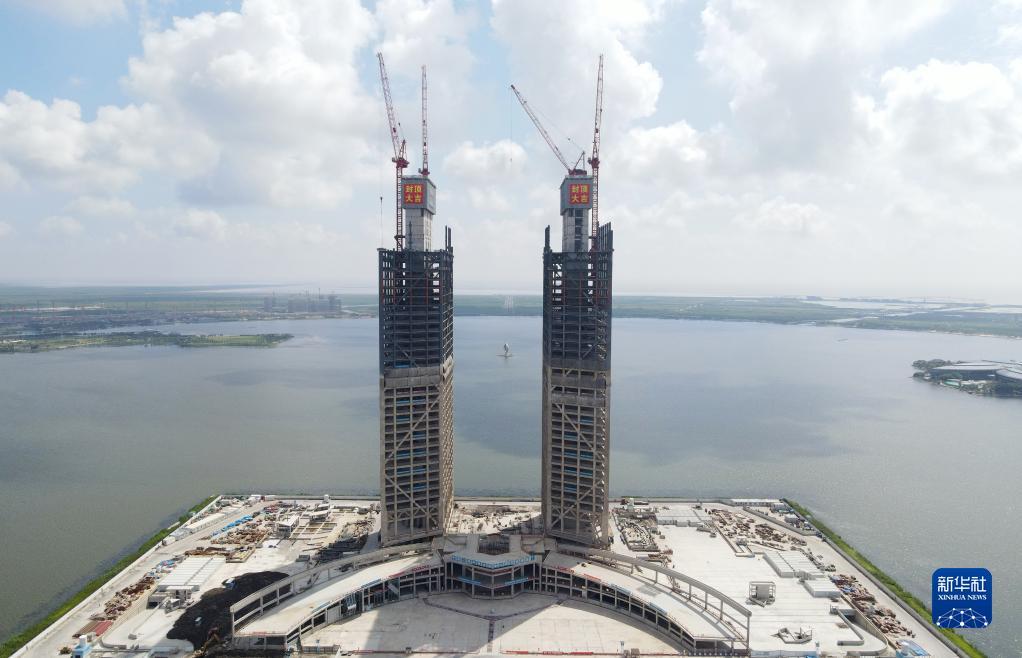 Shanghai: Kernzylinder von zwei Wolkenkratzern in Lingang feiern Richtfest