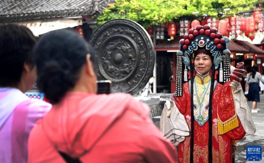 Eine Frau im Kostüm für die Qinqiang-Oper posiert für ein Foto. (Foto vom 12. September, Liu Xiao/Xinhua)