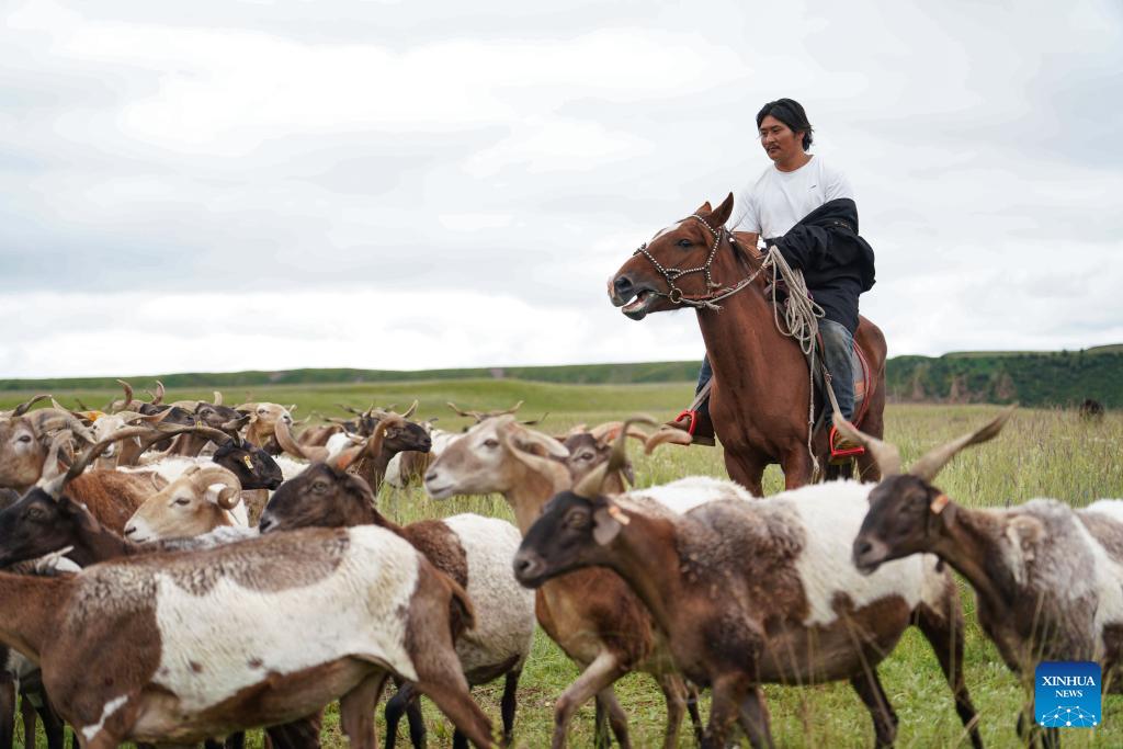 Tashi Choepel mäht am 17. August 2023 im Dorf Duosong das Gras. (Xinhua/Wang Jingyi)