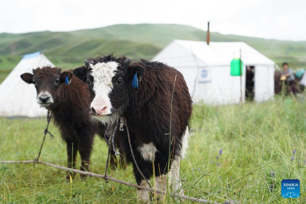 Yaks sind am 17. August 2023 im Dorf Duosongzu sehen. (Xinhua/Wang Jingyi)