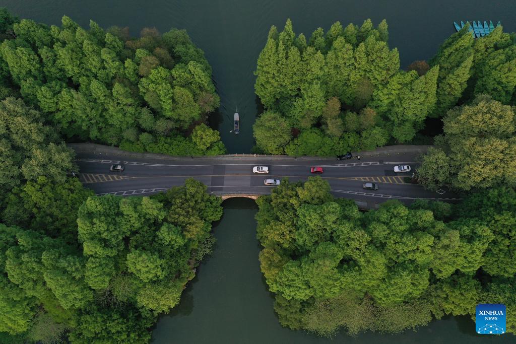 Ein Blick auf den berühmten Westsee in Hangzhou. (Foto vom 12. April 2022, Xinhua)
