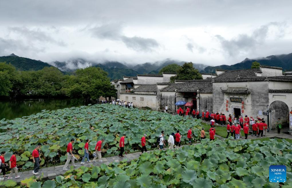 Menschen besuchen am 13. September 2023 das Dorf Hongcun im Kreis Yixian der Stadt Huangshan in der ostchinesischen Provinz Anhui. (Xinhua/Guo Chen)