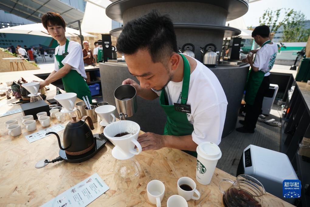 Mitarbeiter bei der Kaffeezubereitung während der Eröffnungszeremonie. (Foto vom 19. September 2023, Xinhua)