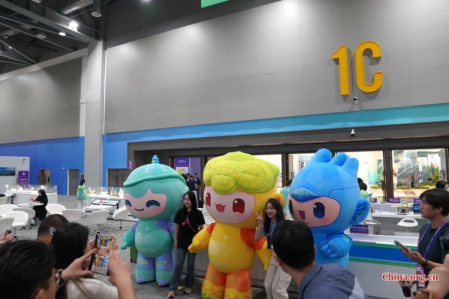 Journalistinnen lassen sich mit den Maskottchen der Asienspiele in Hangzhou fotografieren. (Foto: Wang Yiming/China.org.cn)