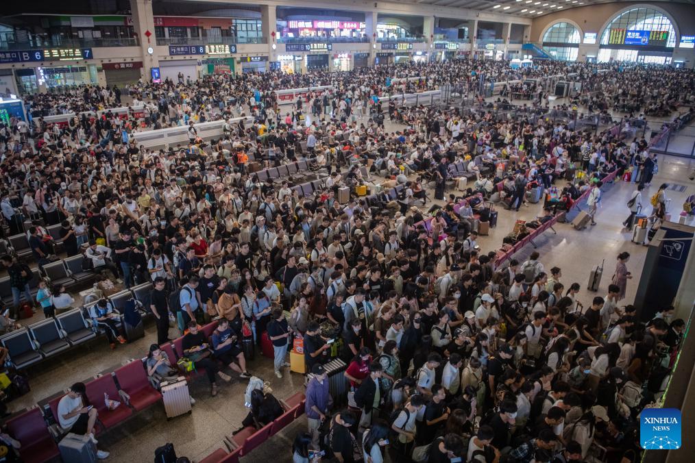 Fahrgäste warten im Bahnhof Hankou in Wuhan in der zentralchinesischen Provinz Hubei auf den Einstieg in die Züge. (Foto vom 28. September, Xinhua/Wu Zhizun)