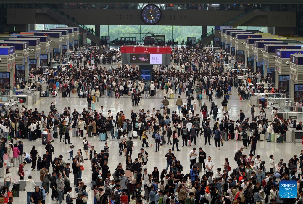 Fahrgäste warten am Ostbahnhof von Zhengzhou in der zentralchinesischen Provinz Henan auf das Einsteigen in die Züge. (Xinhua/Li Jianan)