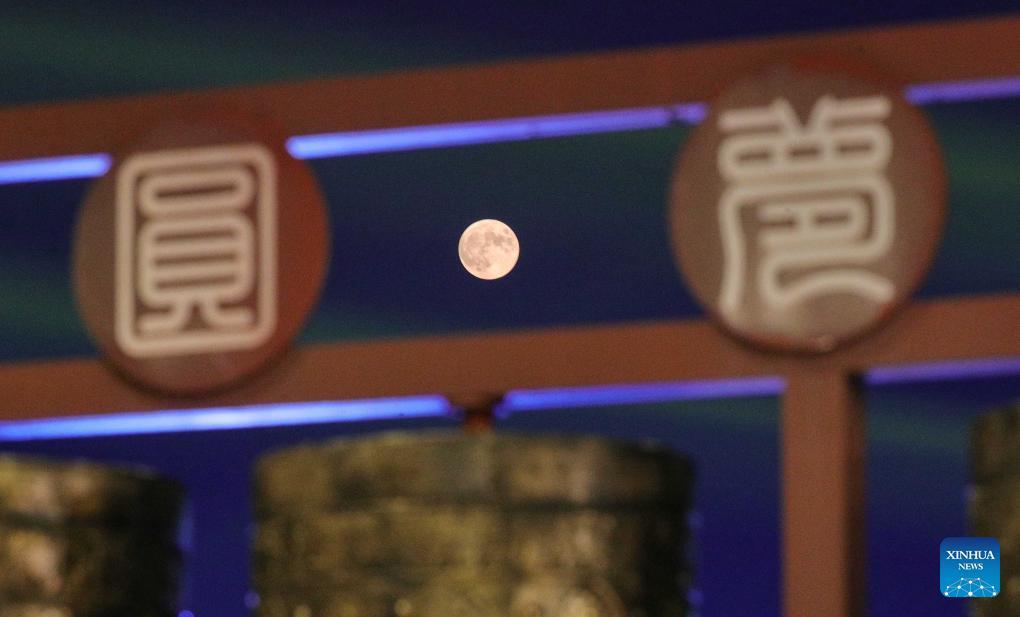 Der Vollmond ist vom Bezirk Haigang in Qinhuangdao in der nordchinesischen Provinz Hebei aus zu sehen.