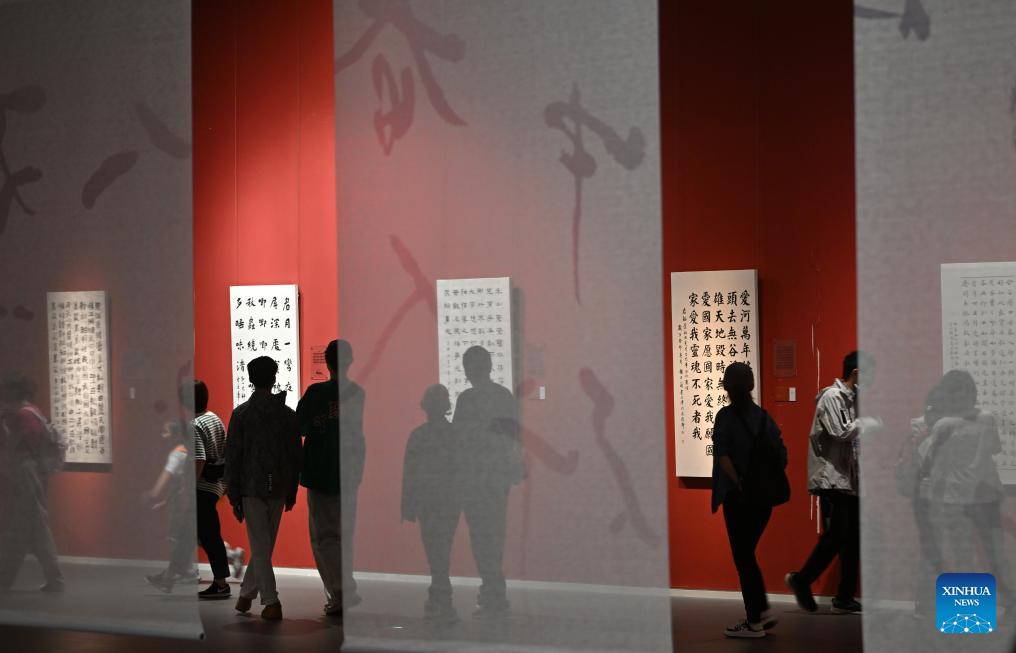Menschen besuchen am 2. Oktober 2023 eine Ausstellung im Tianjin Art Museum in der gleichnamigen nordchinesischen Stadt. In den Nationalfeiertagsferien nehmen die Menschen im ganzen Land an kulturellen Aktivitäten teil, um ihre Urlaubserfahrungen zu bereichern. (Xinhua/Li Ran)