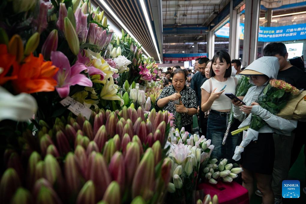 Kunming: Boomender Blumenmarkt in den Ferientagen (Foto vom 5. Oktober 2023, Xinhua/Chen Xinbo)