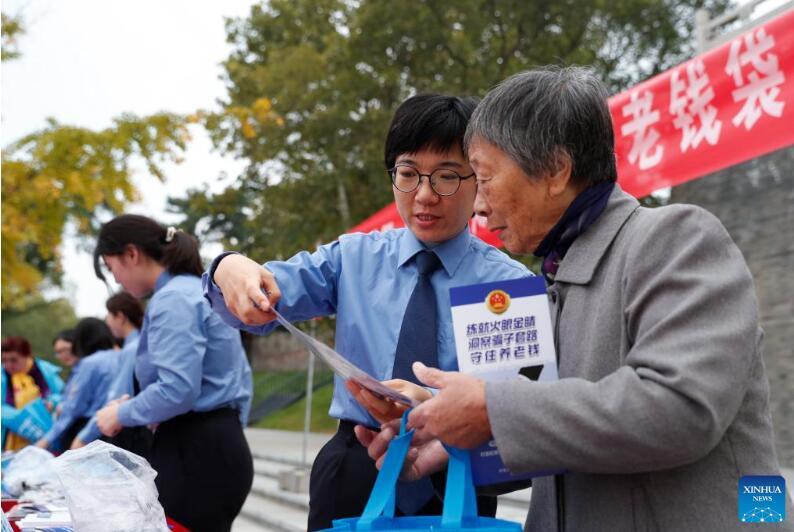 In einem Park in Xinghua in der ostchinesischen Provinz Jiangsu findet eine Aufklärungskampagne zur Betrugsbekämpfung für Älteste statt. (Foto vom 22. Oktober, Zhou Shegen/Xinhua)