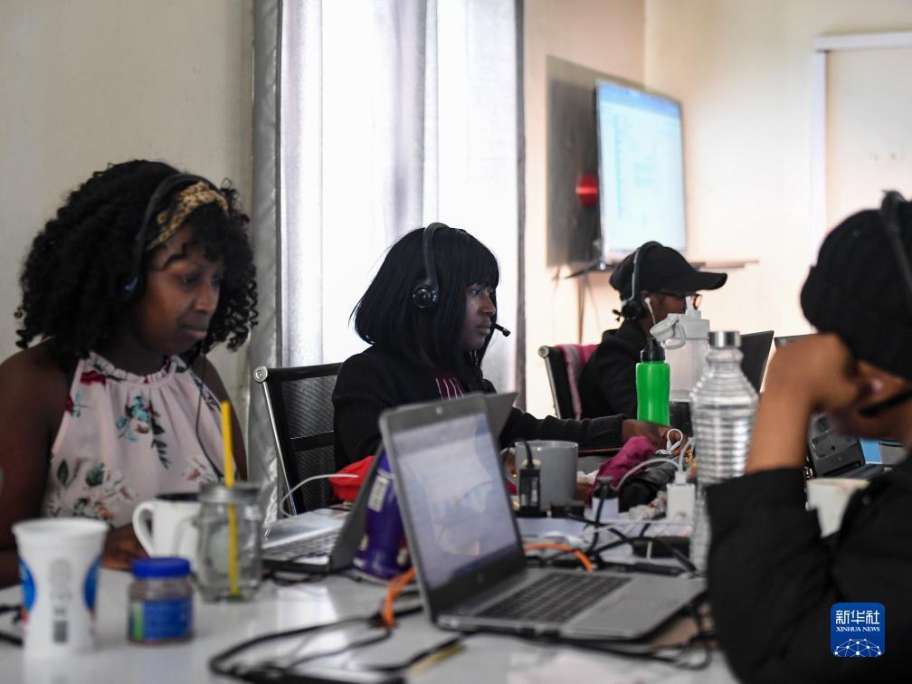 Mitarbeiter des Kundendienstes von Kilimall arbeiten in Mlorongo. (Foto vom 10. November 2023, Xinhua)