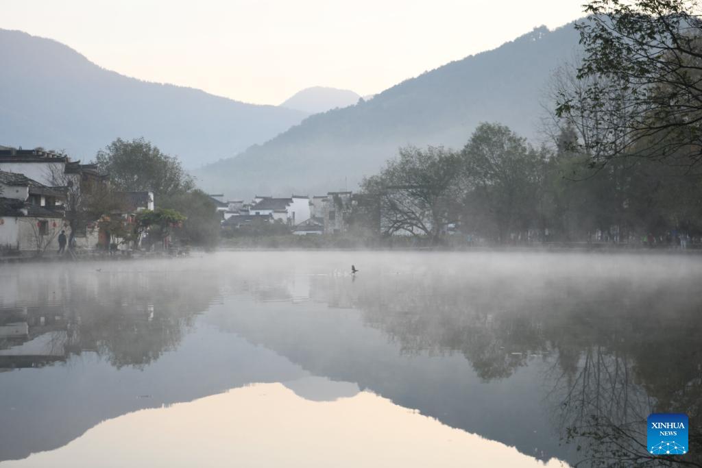 Das Foto zeigt die Winterlandschaft des Dorfes Hongcun im Kreis Yixian. (Foto vom 15. November 2023, Xinhua/Zhang Duan)