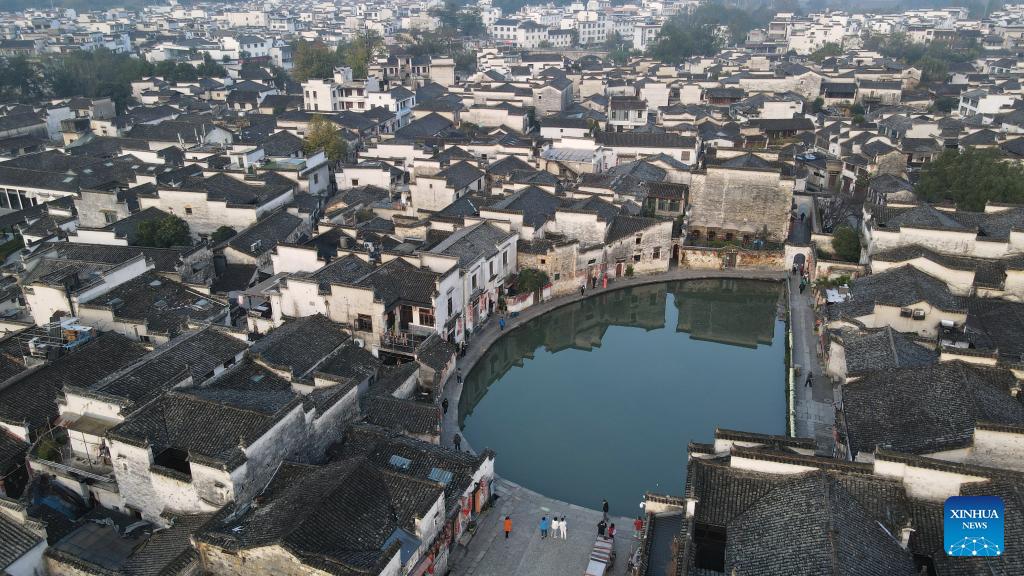 Das Foto zeigt die Winterlandschaft des Dorfes Hongcun im Kreis Yixian. (Foto vom 14. November 2023, Xinhua/Zhang Duan)