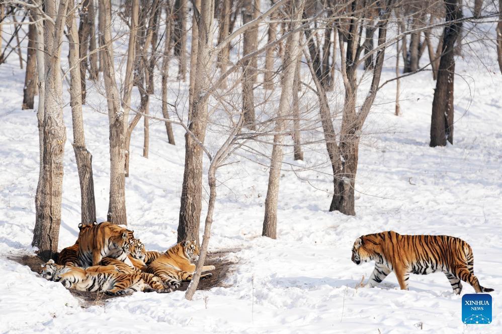 Sibirische Tiger im Schnee. (Foto: Wang Jianwei/ Xinhua)