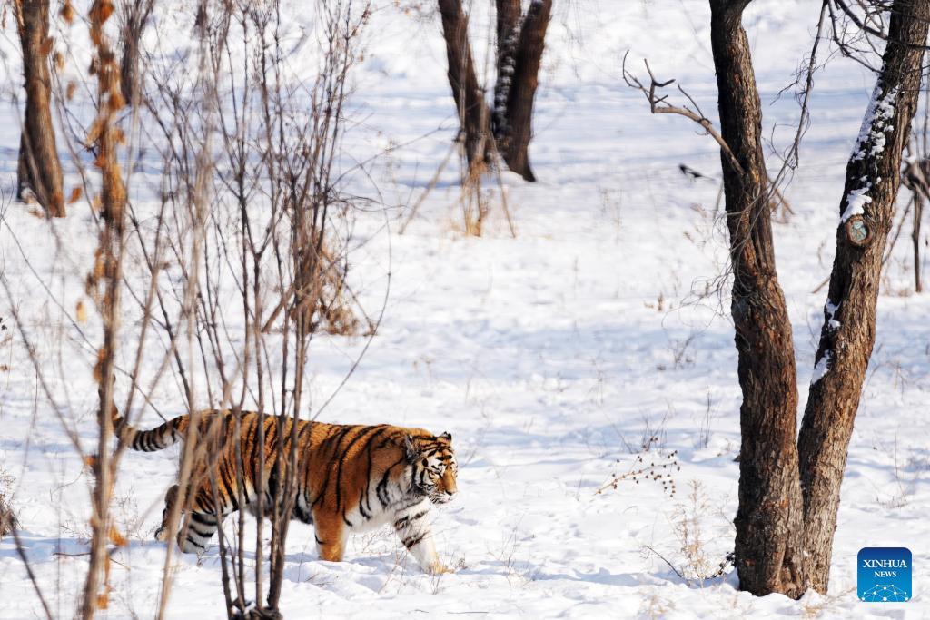 Ein sibirischer Tiger spaziert durch den Schnee. (Foto: Wang Jianwei/ Xinhua)