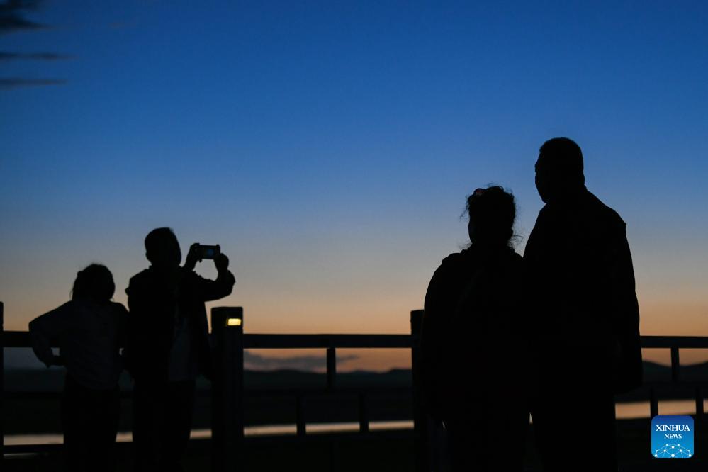 Touristen genießen am 21. August 2023 den Blick auf den Zickzack-Wasserlauf des Gelben Flusses im Autonomen BezirkAba in der südwestchinesischen Provinz Sichuan. (Xinhua/Wang Xi)