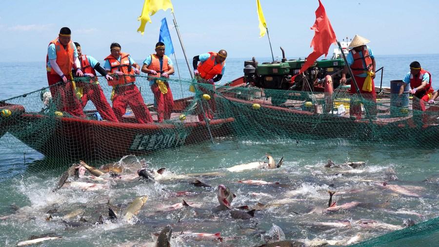 Obwohl Xinjiang im äußersten Westen Chinas liegt, verfügt es über reiche Ressourcen an Gletscherschmelzwasser. Mit über 40 Millionen Mu (2,67 Millionen Hektar) an Teichen und Feuchtgebieten eignet es sich hervorragend für die Entwicklung der Aquakultur und Zucht von Kaltwasserfischarten. Für Einheimische konnte so eine neue Einkommensquelle geschaffen werden.