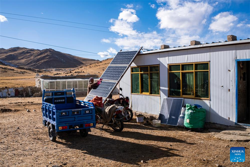 „Das PV-Projekt ermöglicht es uns, kostenlos zu heizen“, sagt Tseyang, die in der ländlichen Gegend des Kreises Nyainrong in Nagqu lebt, und fügt hinzu, dass der von den PV-Modulen erzeugte Strom ausreiche, um das Heizgerät in ihrem Haus zu betreiben.