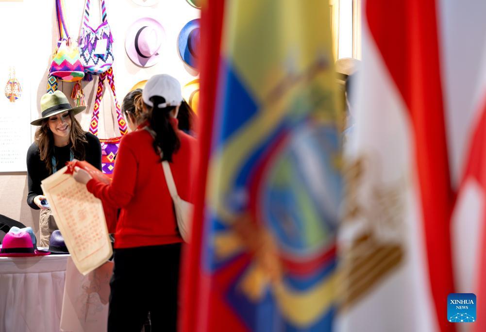 Besucherinnen wählen während der Ausstellung Produkte aus Ecuador aus. (Foto vom 9. Dezember, Xinhua/Wei Peiquan)