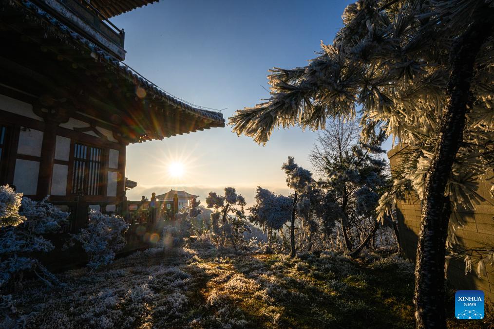 Diese Luftaufnahme zeigt die Touristenattraktion des Dahong-Gebirges in der zentralchinesischen Provinz Hubei. (Foto vom 12. Dezember 2023, Xiao Yijiu/Xinhua)