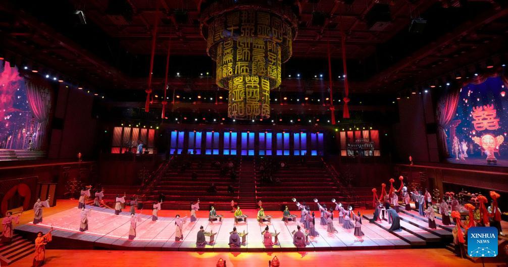 Menschen sehen sich eine Kunstaufführung an. (Foto vom 13. Dezember 2023, Xinhua/ Wang Yuguo)