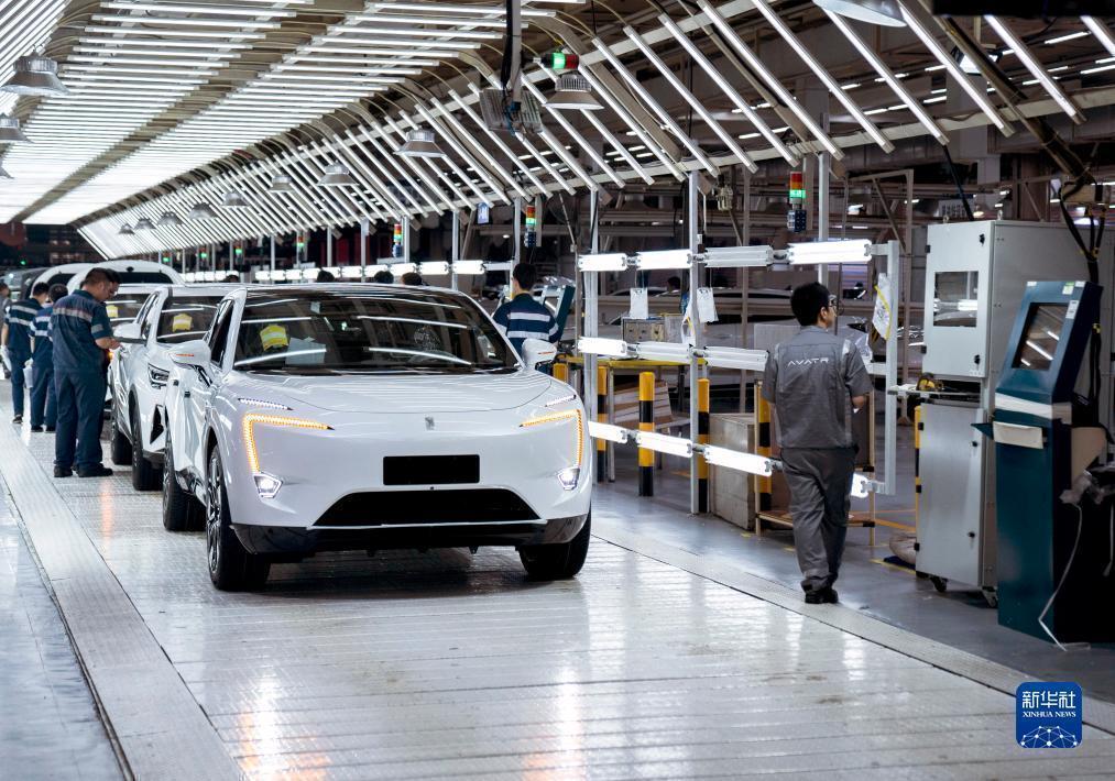 Mitarbeiter in der Produktionskette für NEV des Modells Avita in den Werkstätten des Changan-Automobil-Produktionsstandorts in Chongqing. (Foto vom 20. Juli, Xinhua/Li Qianlei)