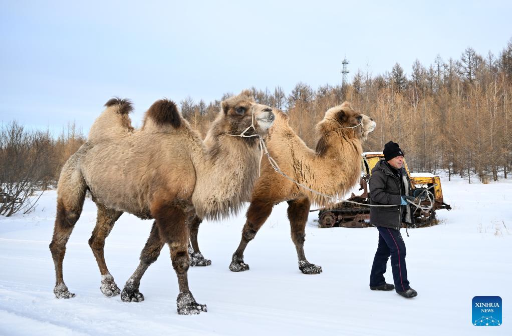 Kamele auf einer Waldfarm in Arxan. (Xinhua)