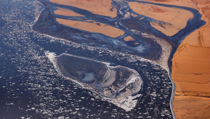 Im Teil des Gelben Flusses im Autonomen Gebiet Ningxia der Hui-Nationalität sind viel Eisscholle entstanden. (Foto vom 24. Dezember, Wang Peng/Xinhua)