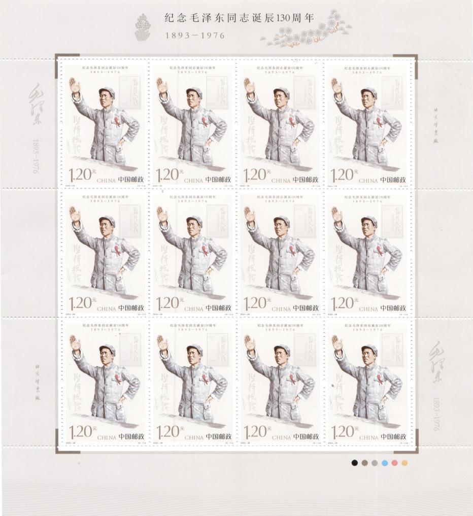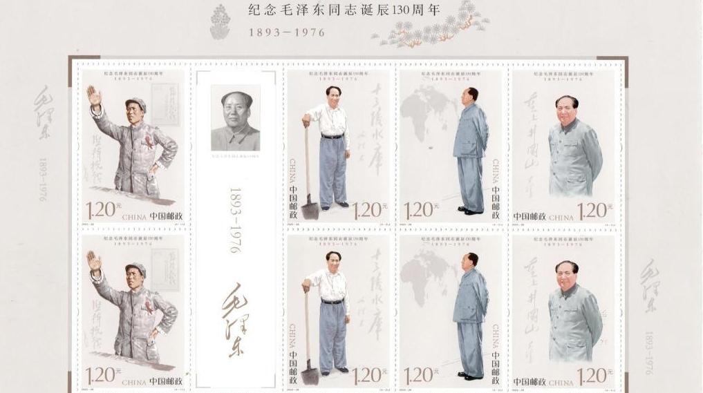 Die China Post hat am Dienstag anlässlich des 130. Geburtstages von Mao Zedong ein Briefmarkenset herausgegeben. Insgesamt 7,8 Millionen dieser Briefmarkensätze können in den nächsten sechs Monaten in bestimmten Postfilialen und Online-Shops erworben werden. Der Nennwert eines Satzes beträgt 4,8 Yuan.