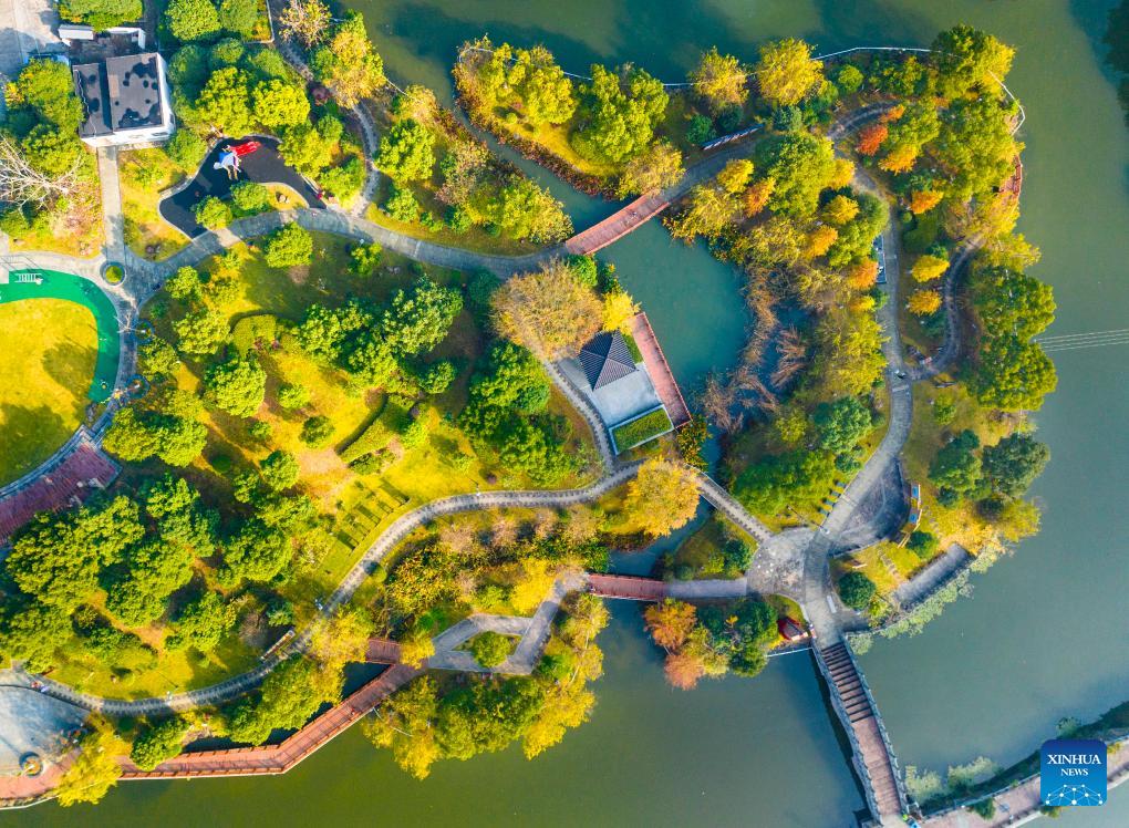 Diese Luftaufnahme vom 5. Dezember 2023 zeigt die Landschaft im Dorf Renjiu in der ostchinesischen Provinz Zhejiang. (Foto von Hu Xuejun/Xinhua)