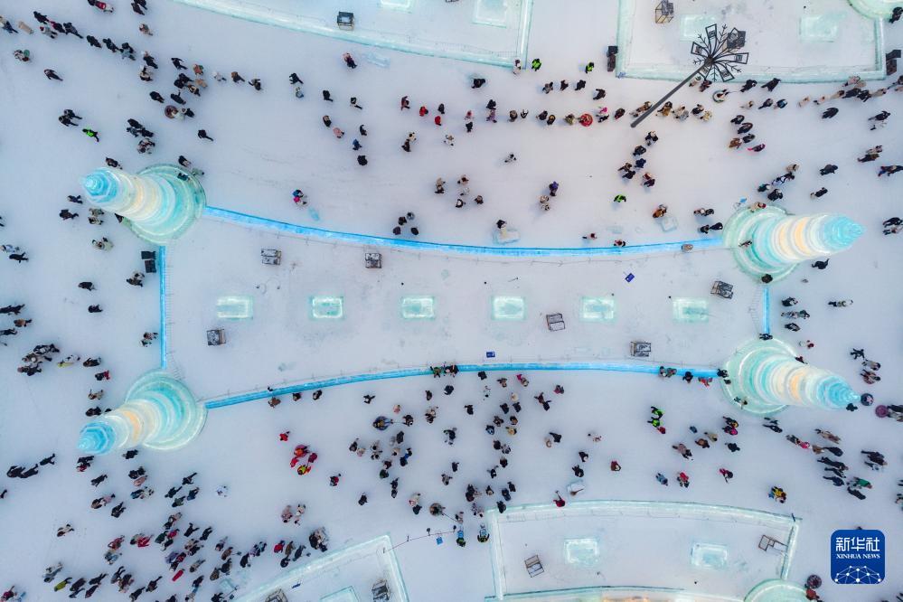 Die Eisskulpturen ziehen zahlreiche Besucher an. (Foto vom 4. Januar 2024, Xie Jianfei/Xinhua)